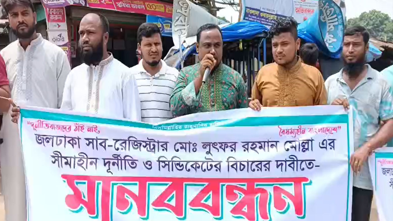 নীলফামারীর জলঢাকা উপজেলা সাব-রেজিস্ট্রার মোঃ লুৎফর রহমান মোল্লার সীমাহীন দুর্নীতি ও তার সিন্ডিকেটের বিচারের দাবিতে মানববন্ধন কর্মসূচি পালিত হয়েছে। সোমবার (২৫ আগস্ট) সকালে জলঢাকা বাজারের জিরো পয়েন্টে সচেতন নাগরিক সমাজের উদ্যোগে...