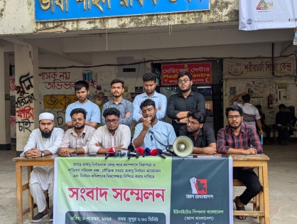 আজ সোমবার বিকেলে ভাষা শহীদ রফিক ভবনের সামনে আয়োজিত এক সংবাদ সম্মেলনে তিনি এ দাবি জানান। সংবাদ সম্মেলনে উপস্থিত ছিলেন ক্যাম্পাস সংগঠকদের মধ্যে তাওহীদুল ইসলাম, আবরার হাবীব, রবিউল হাসান নয়ন, তাফহিম রাফি, রাতুল, মাহী,মাবরুর এবং আহনাফ আতিফ প্রমুখ। এ সময় নির্বাচনকালীন ক্যাম্পাসের সার্বিক পরিস্থিতি নিয়ে শিক্ষার্থীদের মধ্যে উদ্বেগ কাজ করছে বলে জানানো হয়।