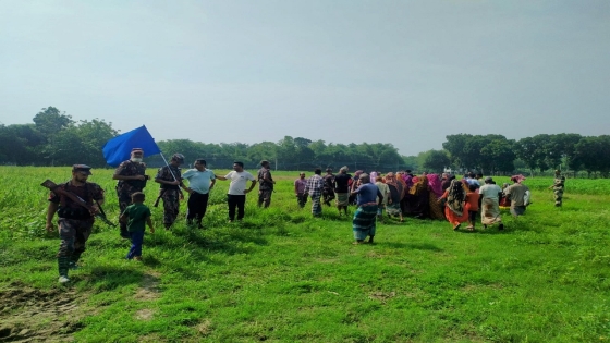 চুয়াডাঙ্গা সীমান্তে হৃদয় বিদারক এক ঘটনার সাক্ষী হলো দুই দেশের মানুষ। শূন্যরেখায় দাঁড়িয়ে মাকে চিরবিদায় জানালেন বাংলাদেশে বসবাসরত দুই কন্যা। বিজিবি ও বিএসএফের সম্মিলিত উদ্যোগে সম্ভব হয় এই মানবিকতার। ভারতের পশ্চিমবঙ্গের নদিয়া জেলার চাপড়া থানার গোংরা গ্রামের বাসিন্দা লোজিনা বেগম (৮০) বার্ধক্যজনিত কারণে ২ জুন রাত ৯টার দিকে মারা যান। তার চার ছেলে ও চার মেয়ে। এর মধ্যে দুই মেয়ে দীর্ঘদিন ধরে চুয়াডাঙ্গার দামুড়হুদার জয়পুর গ্রামে স্বামী-সন্তানসহ স্থায়ীভাবে বসবাস করছেন। মায়ের মৃত্যুর খবর পেয়ে তারা চুয়াডাঙ্গা বিজিবির সীমান্তে দাঁড়িয়ে শেষবারের মতো মাকে দেখার আকুতি জানান। পরে বিজিবির জগন্নাথপুর বিওপি ও ভারতের ১৬১ বিএসএফ ব্যাটালিয়নের গোংরা ক্যাম্প যৌথভাবে এই বন্দোবস্ত করে। মঙ্গলবার (৩ জুন) সকাল ৯টা ১০ মিনিট থেকে ৯টা ৩০ মিনিট পর্যন্ত চুয়াডাঙ্গা সীমান্তের মেইন পিলার ৯৬/৮-এস এর শূন্যরেখায় দুই দেশের স্বজনরা লোজিনা বেগমকে শেষ বিদায় জানান। এসময় মায়ের মুখ দেখে বার বার মূর্চ্ছা যান দুই মেয়ে। চুয়াডাঙ্গা ব্যাটালিয়নের অধিনায়ক লেফটেন্যান্ট কর্নেল নাজমুল হাসান বলেন, সীমান্তে শান্তি ও সম্প্রীতি বজায় রাখার পাশাপাশি মানবিক বিষয়েও বিজিবি আন্তরিক।