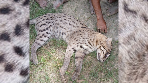 ঝিনাইদহের শৈলকুপায় ধান কাটার মেশিনের সামনে পড়ে আহত একটি মেছোবাঘের শাবককে পিটিয়ে মেরেছে এলাকাবাসী।