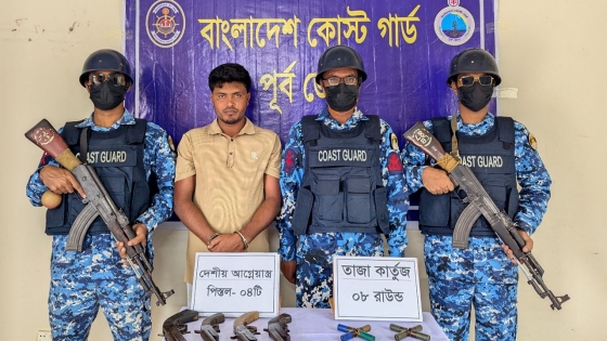 কক্সবাজারের মহেশখালীতে ৪টি দেশীয় আগ্নেয়াস্ত্র ও ৮ রাউন্ড তাজা কার্তুজসহ সন্ত্রাসী আটক করেছে কোস্ট গার্ড ২১ আগস্ট এ অভিযান চালানো হয়। কোস্ট গার্ড মিডিয়া কর্মকর্তা লেফটেন্যান্ট কমান্ডার সিয়াম-উল-হক বৃহস্পতিবার (২১ আগস্ট দুপুরে এক সংবাদ বিজ্ঞপ্তিতে এ তথ্য জানান।