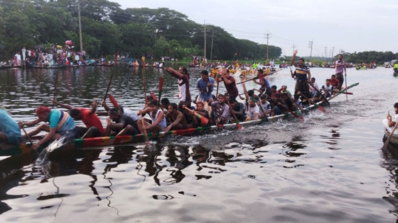 পদ্মা নদীতে ঐতিহ্যবাহী নৌকা বাইচ, হাজারো দর্শনার্থীদের ঢল