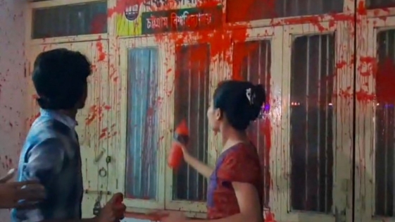 চবি প্রক্টরের পদত্যাগ দাবিতে মশালমিছিল, লাল রং ছিটিয়ে প্রতিবাদ