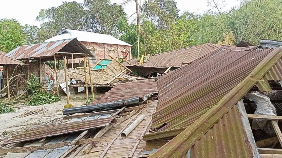রবিবার (৫ অক্টোবর) সকালে কিশোরগঞ্জ উপজেলার গাড়াগ্রাম ইউনিয়নের পশ্চিম দলিরাম বানিয়াপাড়া গ্রামে কয়েক মিনিটের তীব্র ঝড়ে বাড়িঘর ভেঙে যায়।