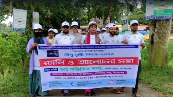 ‘আপনার চোখকে ভালোবাসুন’ এ প্রতিপাদ্যকে সামনে নিয়ে কিশোরগঞ্জে নানা আয়োজনে পালিত হয়েছে বিশ্ব দৃষ্টি দিবস। এ উপলক্ষে বৃহস্পতিবার (৯ অক্টোবর) সকালে কিশোরগঞ্জ চক্ষু হাসপাতাল থেকে একটি বর্ণাঢ্য র্যালি বের হয়।হাসপাতালের পরিচালক ডা. মাহবুবা খন্দকারের নেতৃত্বে র্যালিটি হাসপাতাল থেকে শুরু হয়ে কিশোরগঞ্জ -ভৈরব সড়কের সগড়া এলাকা হয়ে আবারও হাসপাতালে গিয়ে শেষ হয়। পরে সেখানে আলোচনা সভার আয়োজন করা হয়।