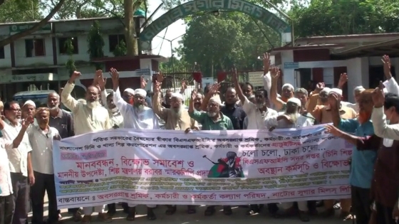 নাটোর চিনিকলের অবসরপ্রাপ্ত শ্রমিক-কর্মচারীদের বিক্ষোভ