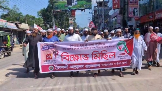 `মুক্তির মূলমন্ত্র-ইসলামী শাসনতন্ত্র’ এই স্লোগানকে সামনে রেখে ইসলামী আন্দোলন বাংলাদেশ ঘোষিত ৫ দফা দাবিতে সারাদেশের ন্যায় খাগড়াছড়িতেও বিক্ষোভ মিছিল অনুষ্ঠিত হয়েছে। আজ সোমবার (২৭ অক্টোবর) সকালে জেলা শহরের আদালত চত্বর থেকে জেলা ইসলামী আন্দোলন বাংলাদেশ-এর উদ্যোগে এ বিক্ষোভ মিছিল অনুষ্ঠিত হয়।